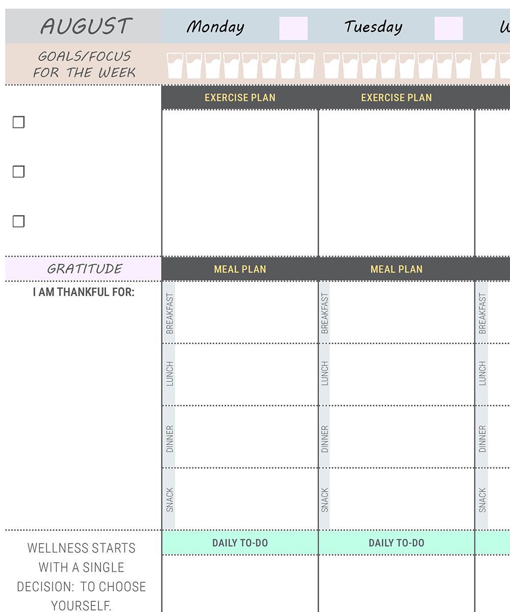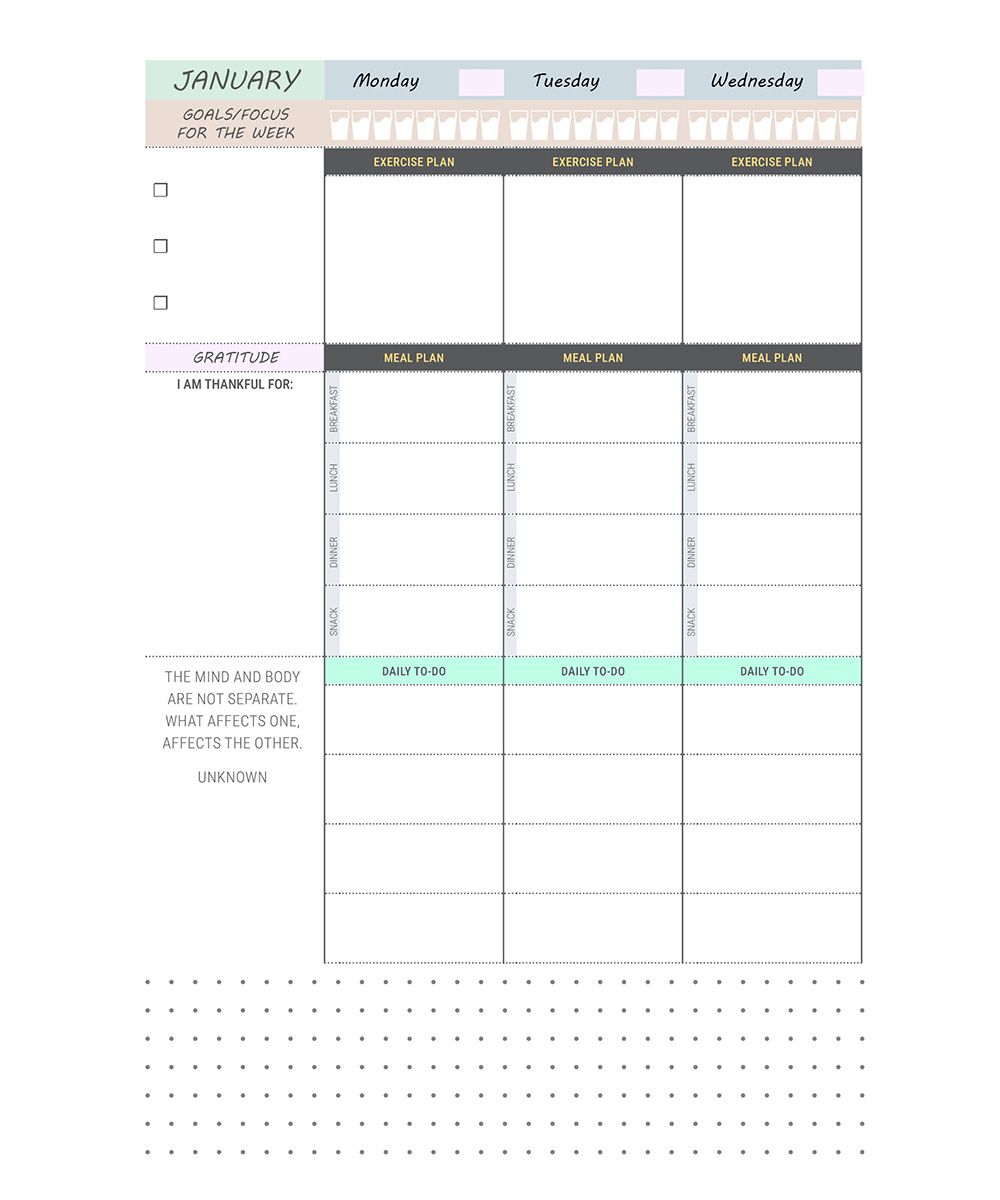 - Weekly Goals & Focus: Define your objectives and keep them top of mind throughout the week.